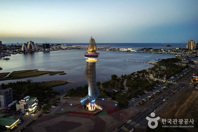 속초엑스포공원 내에 위치한 엑스포타워는 산과 호수가 어울리는 자연공원 속의 하이테크 전망타워이다. 타워의 외관은 수직으로 상승하는 역동적 형태는 강원특별자치도의 미래를 상징하며, 나선형의 상승구조와 태양의 반사각도에 따른 다양한 변화를 연출하고 있다. (자료출처 : 대한민국 구석구석 - korean.visitkorea.or.kr)